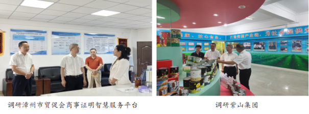 9月25日至26日,省貿(mào)促會黨組書記、會長鐘木達(dá)赴龍巖、漳州調(diào)研貿(mào)促工作,先后在龍巖、漳州召開座談會,了解兩地貿(mào)促工作情況和部分國際商會會員企業(yè)生產(chǎn)經(jīng)營情況,聽取市、縣(區(qū))貿(mào)促會和企業(yè)的意見和建議。調(diào)研漳州市貿(mào)促會商事證明智慧服務(wù)平臺,走訪有關(guān)企業(yè)。鐘木達(dá)充分肯定龍巖、漳州貿(mào)促工作,并回應(yīng)解答與會人員提出的問題和建議。省貿(mào)促會貿(mào)易投資促進(jìn)部二級調(diào)研員周新亮陪同調(diào)研。